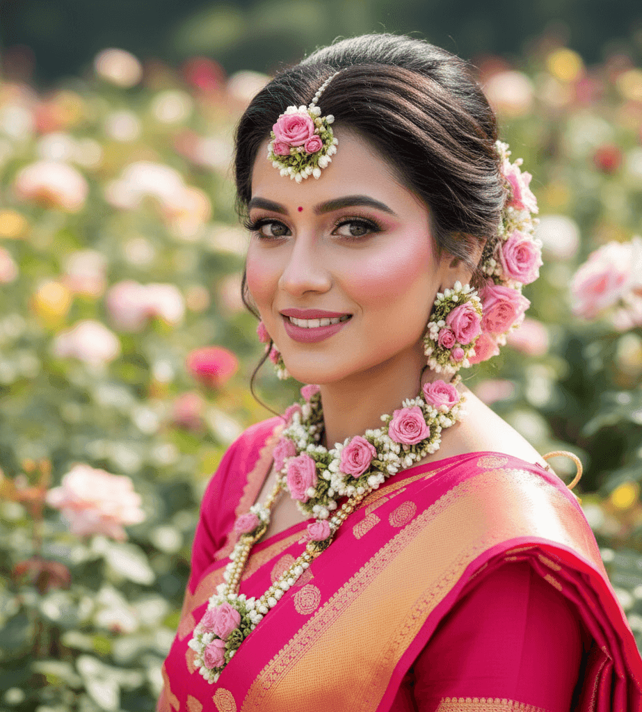 2. Banarasi saree ke sath engagement makeup kaise match karein?
